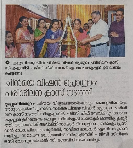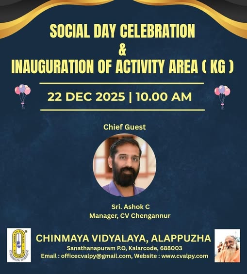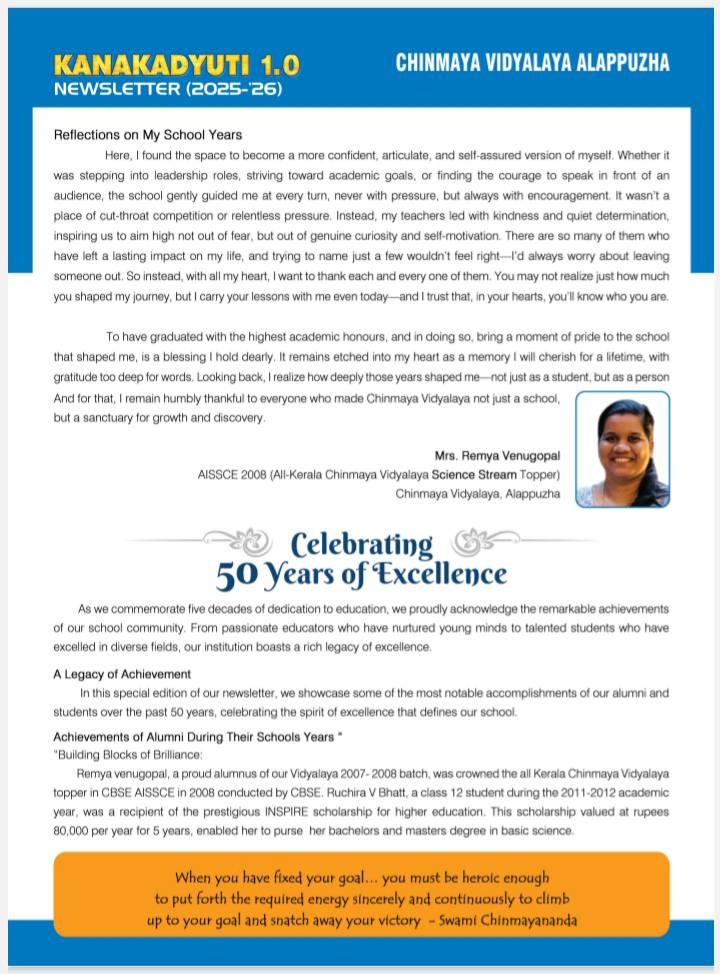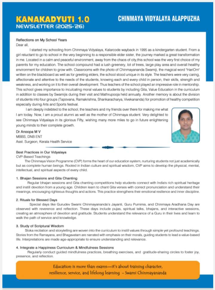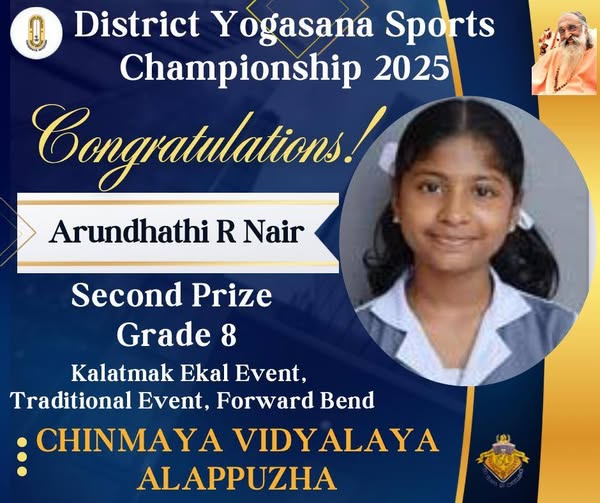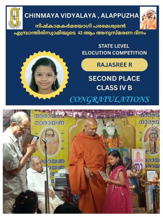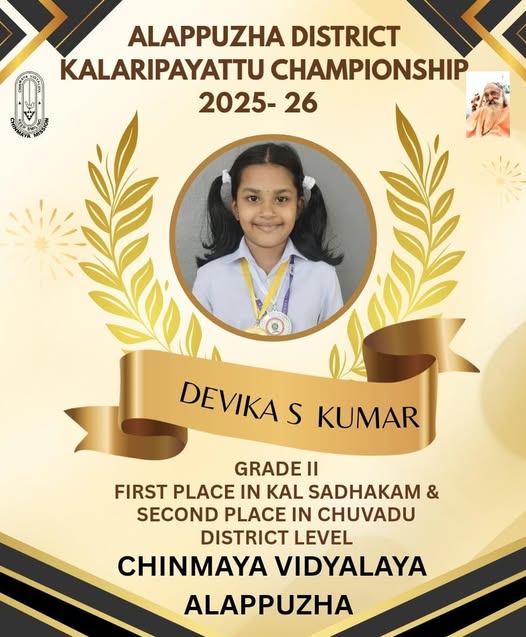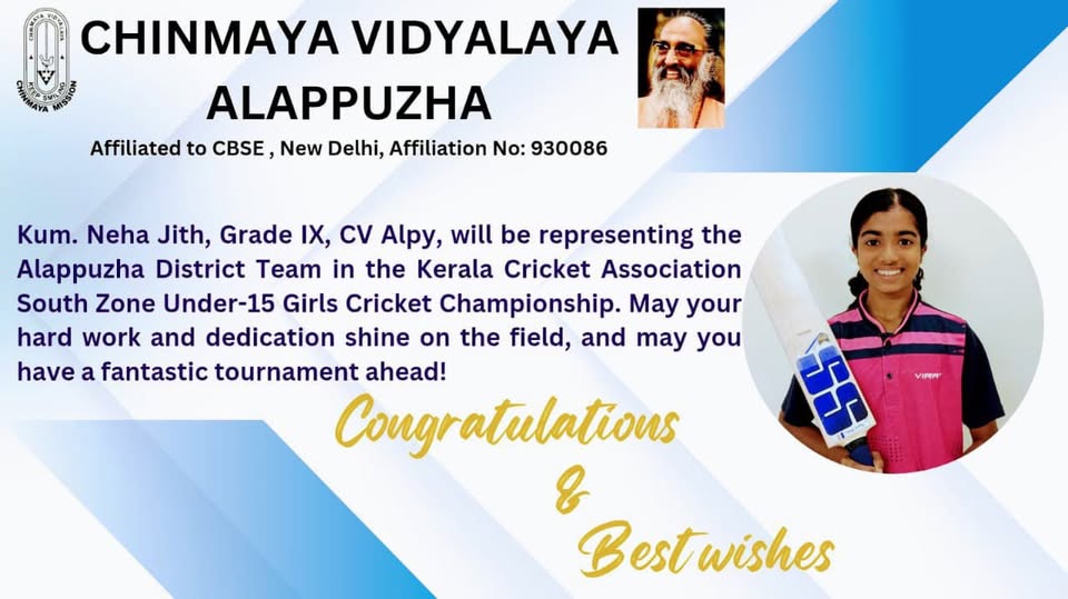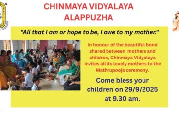 With deep appreciation and pride, the Chinmaya family congratulates Dr. Deepa K P, M/o Saavan Mukesh, Class lll, CV Alpy for her commendable achievement in the field of community service