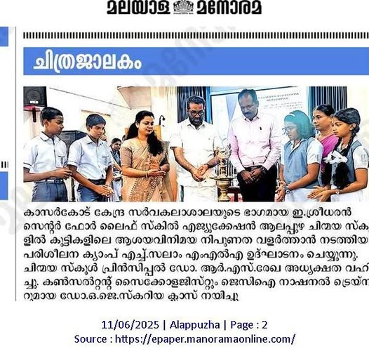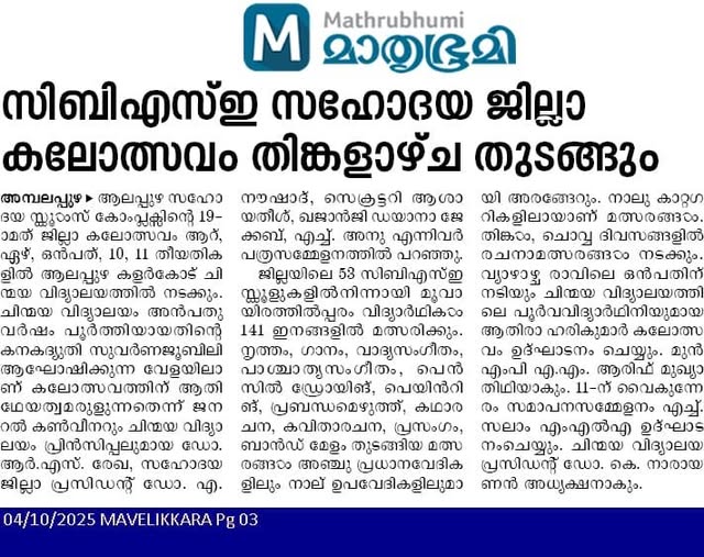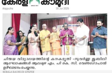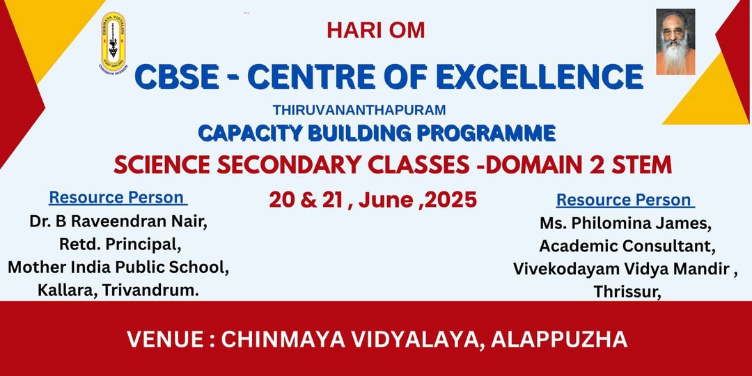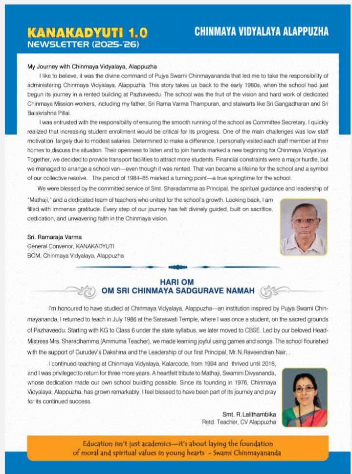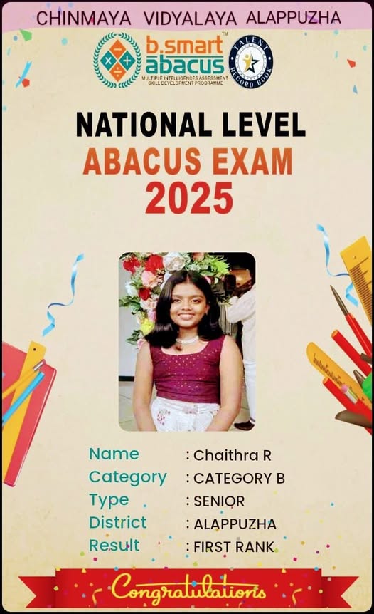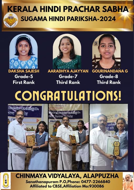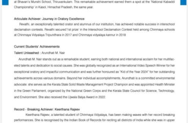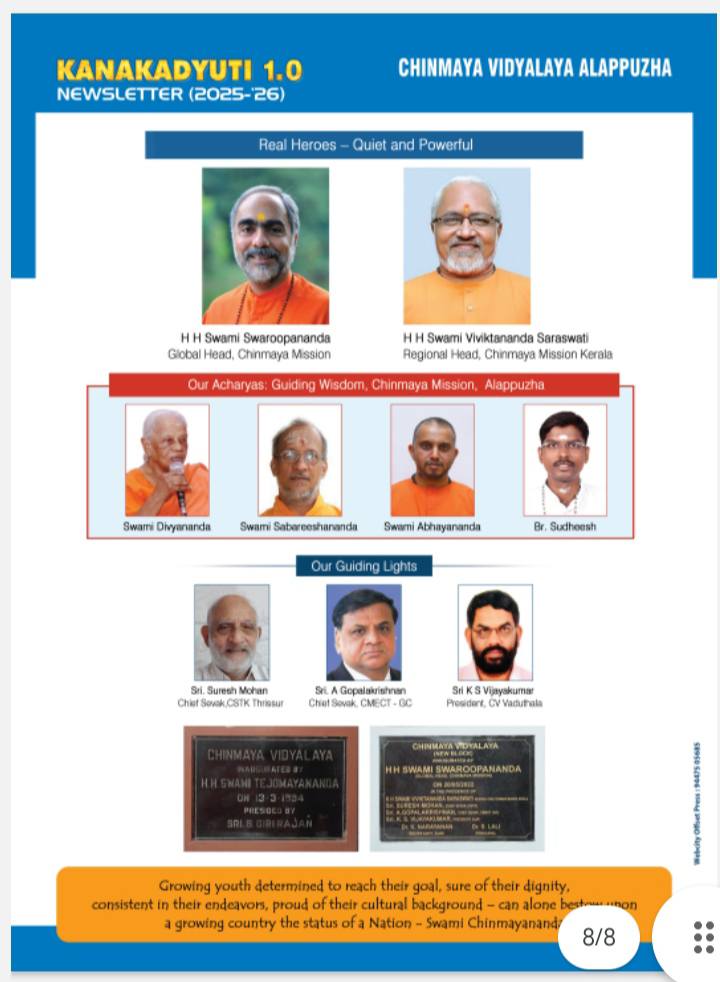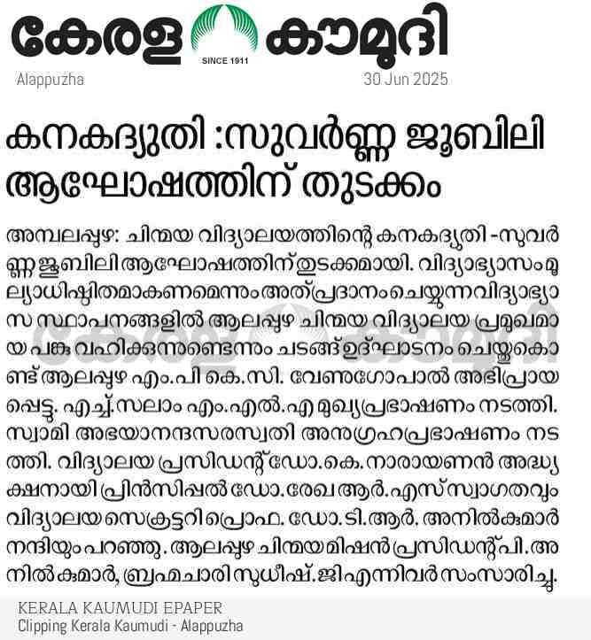 With deep appreciation and pride, the Chinmaya family congratulates Dr. Deepa K P, M/o Saavan Mukesh, Class lll, CV Alpy for her commendable achievement in the field of community service